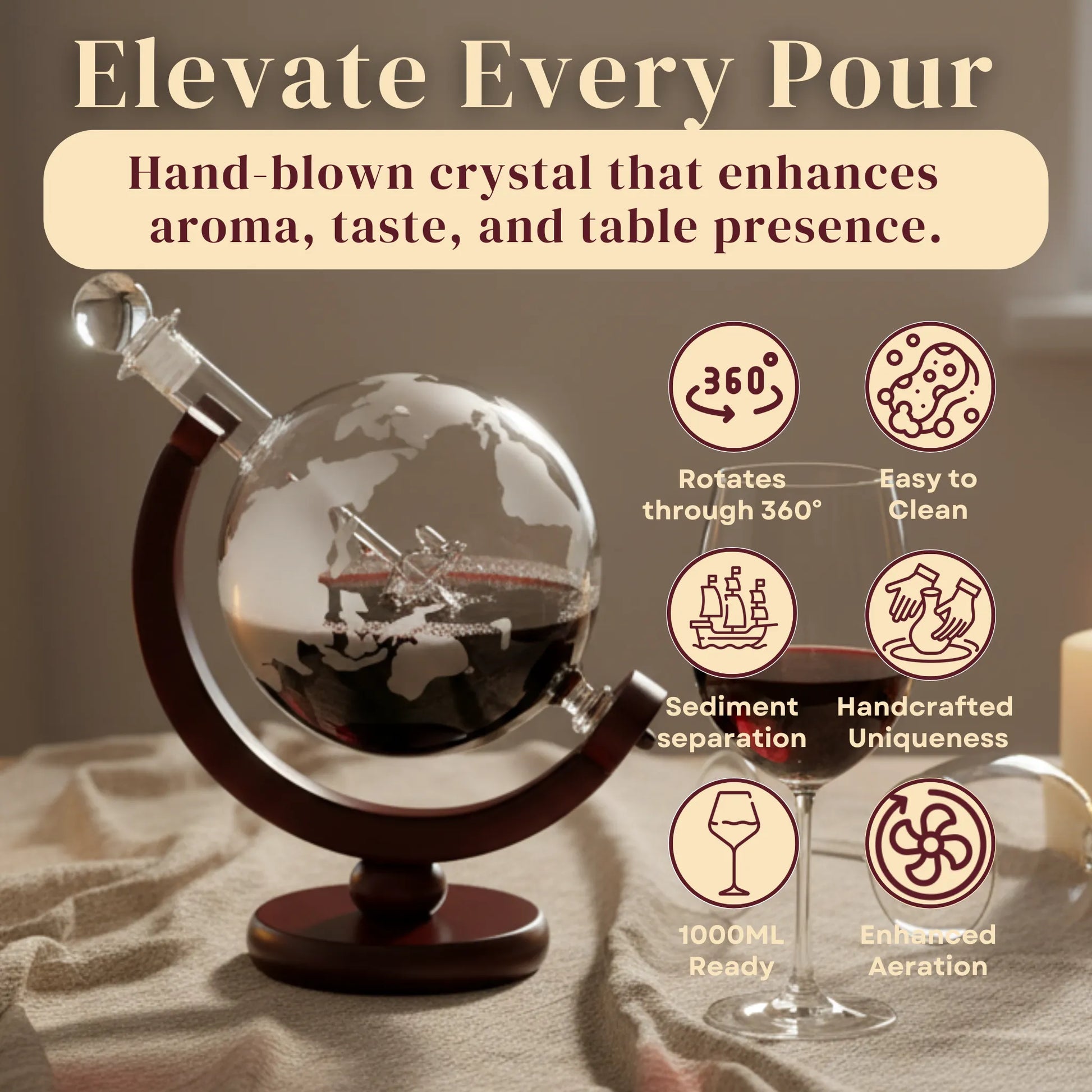 Oxygen meets tannin. Textures soften, aromas rise. As wine swirls inside the globe, it opens up with every turn, revealing deeper flavors and richer aromas.