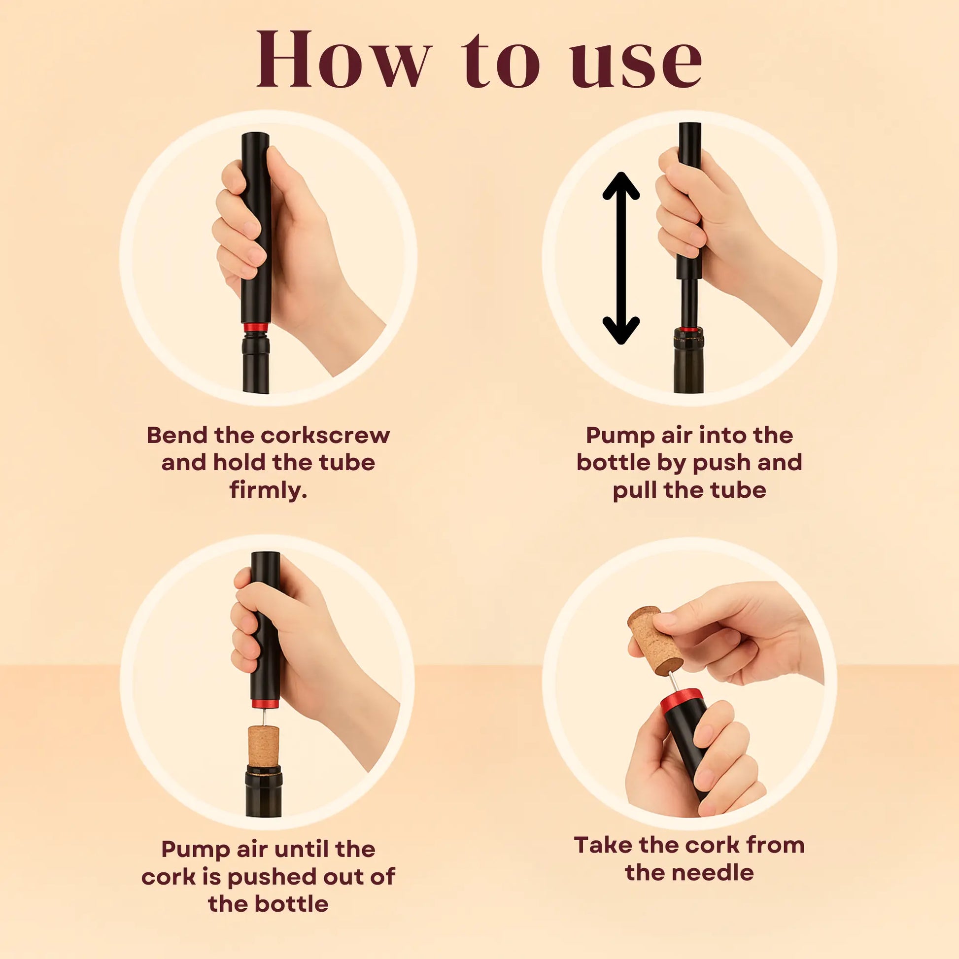 No twisting, no pulling, no broken corks. With a simple push-and-pump system, the AeroPump uses air pressure to remove the cork in seconds. A clean and effortless way to uncork every bottle.