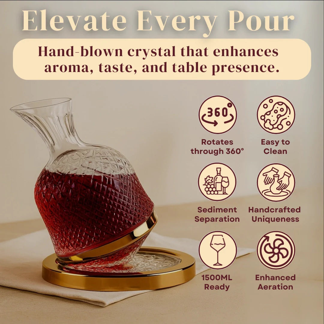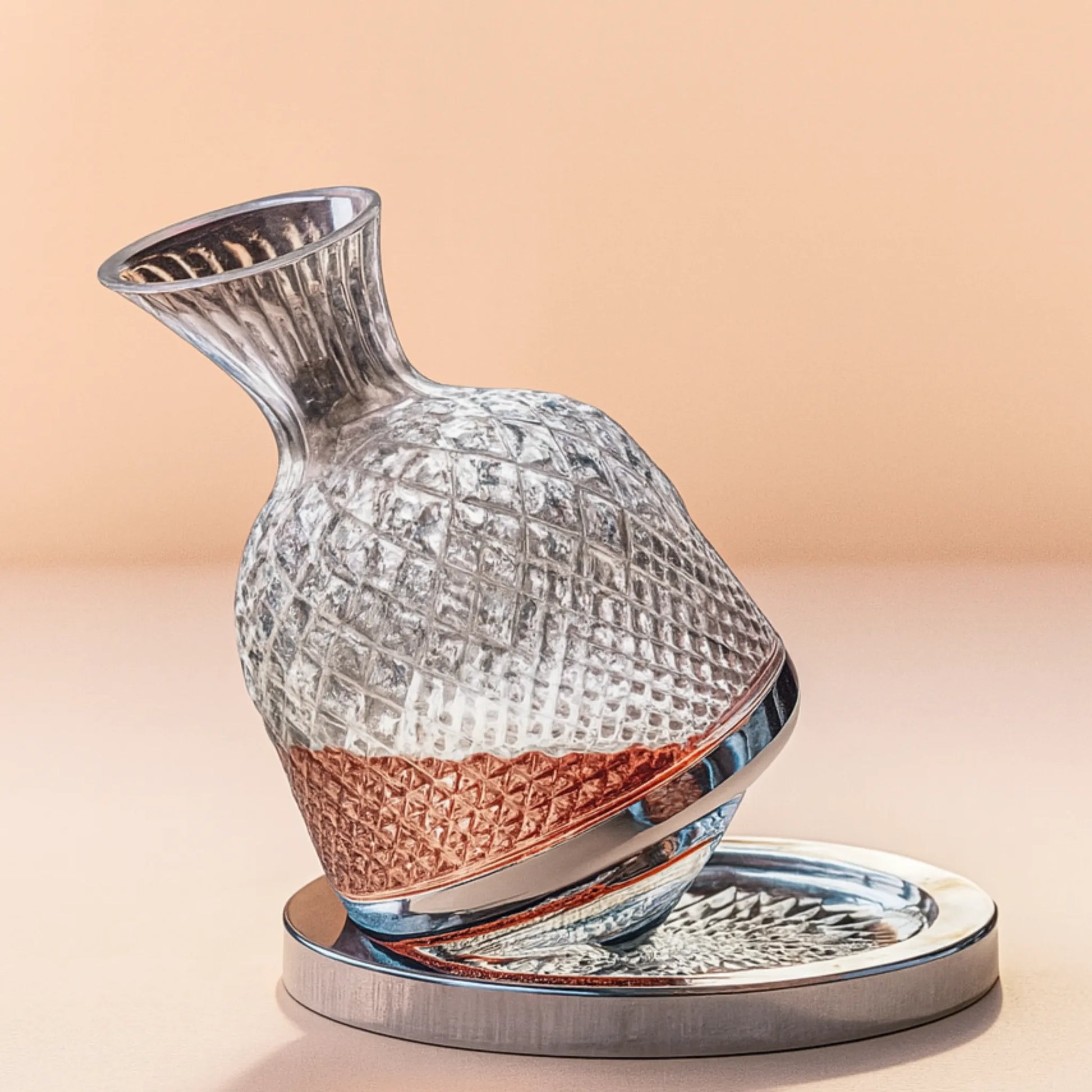 Thanks to its wide, fluted body and 360° rotating base, the Vortex transforms every pour into an experience unlocking aromas, enhancing flavors, and adding a refined elegance to any table.