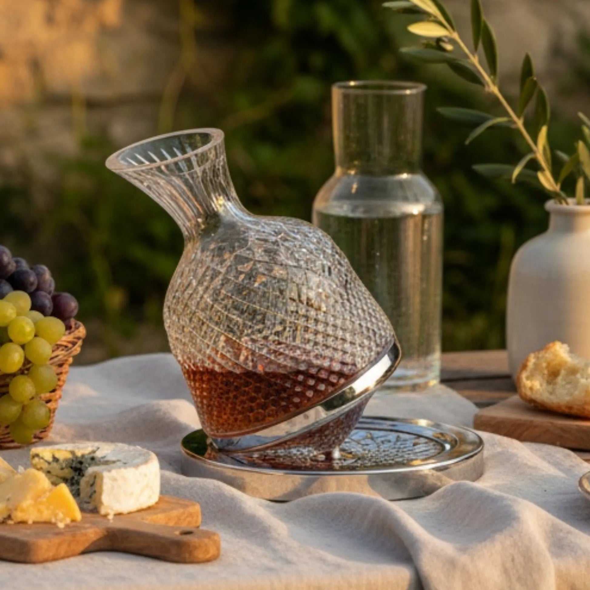 Oxygen meets tannin. Texture softens. Aromas rise. In this precise diamond-cut form, every turn on its 360° base unlocks depth and character.