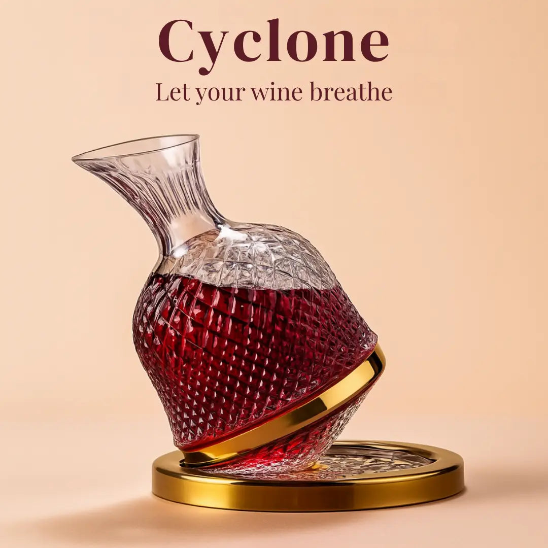 Thanks to its wide, fluted body and 360° rotating base, the Cyclone transforms every pour into an experience unlocking aromas, enhancing flavors, and adding a refined elegance to any table.